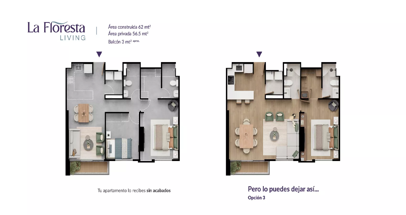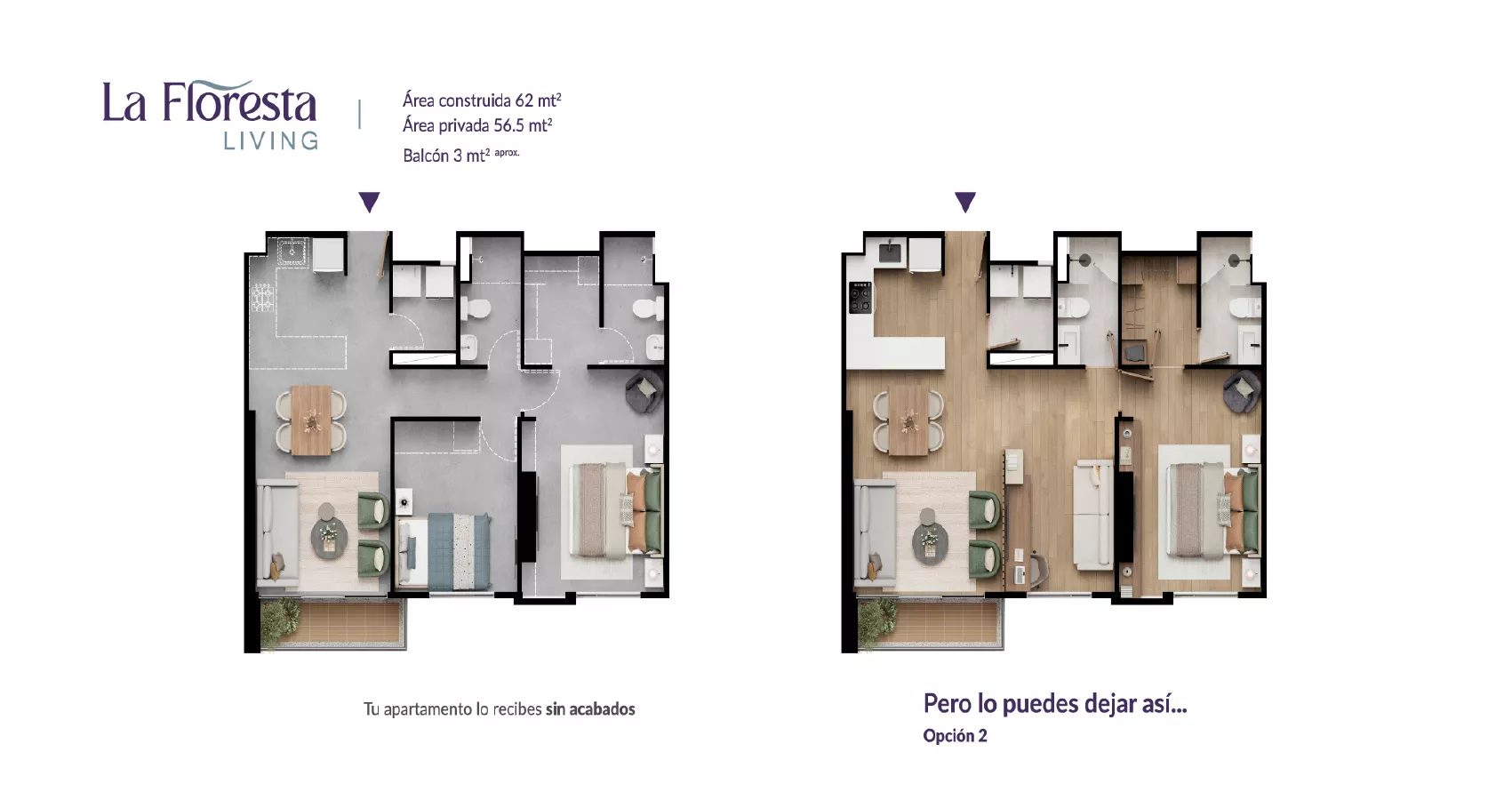 - Área privada: Desde 56m2