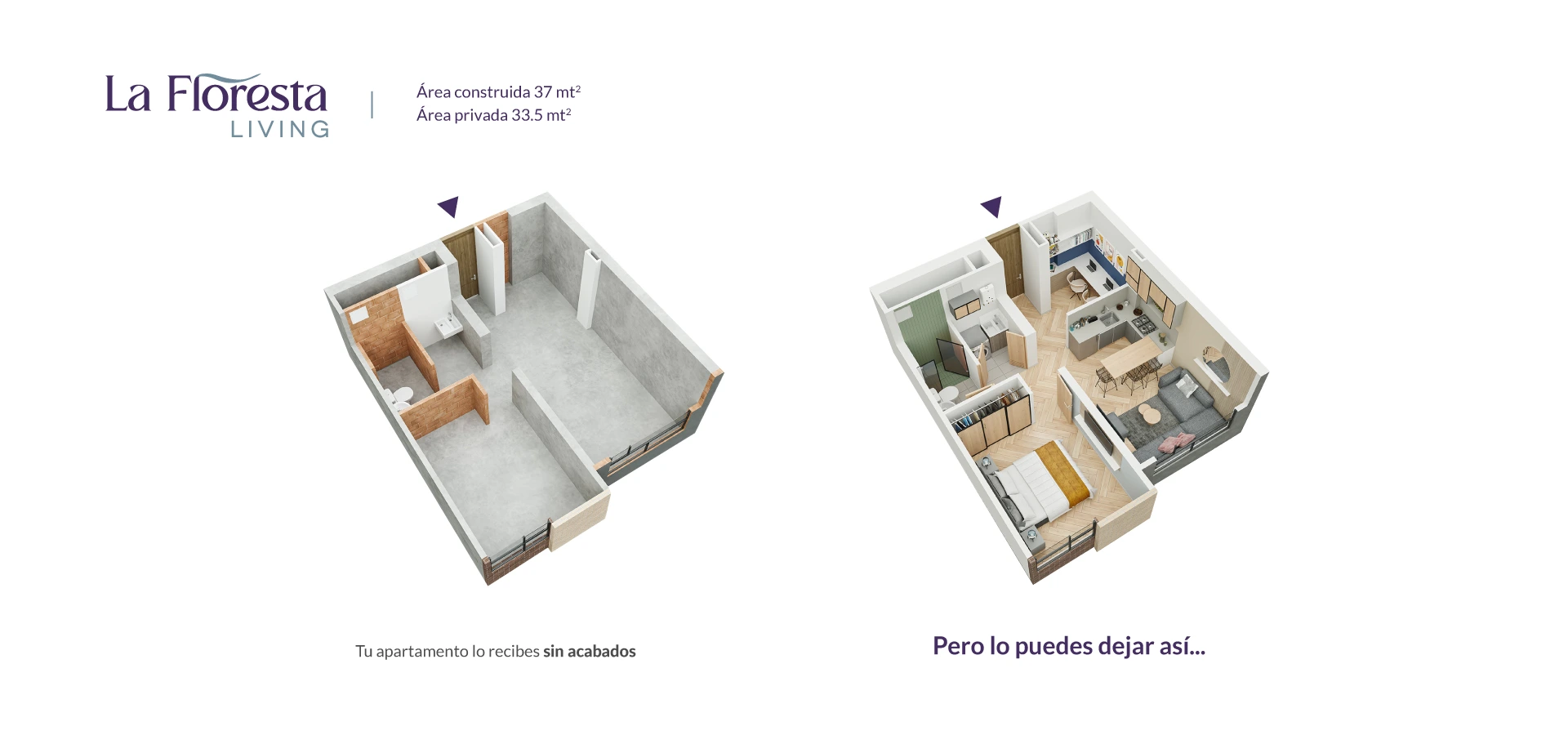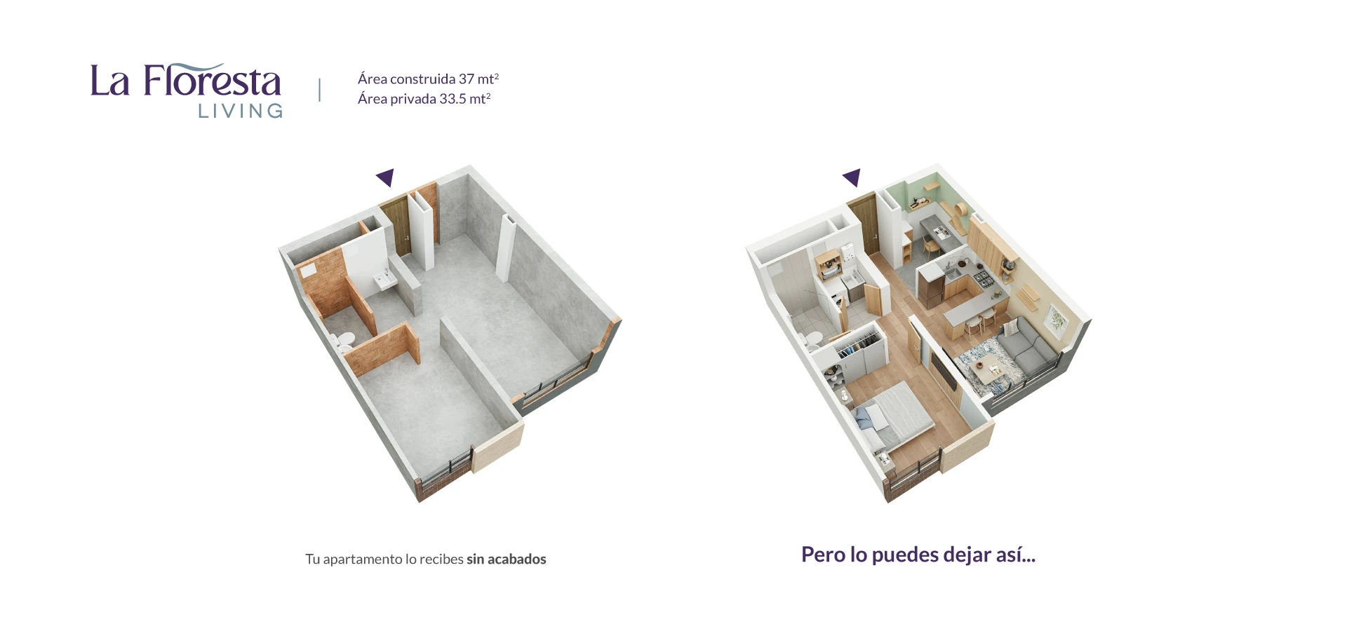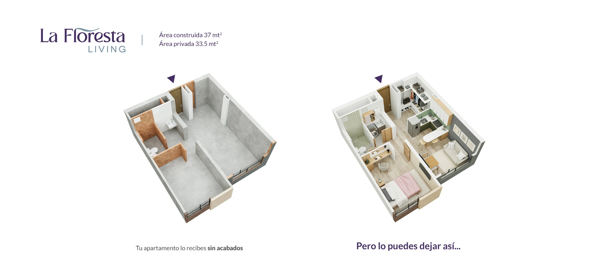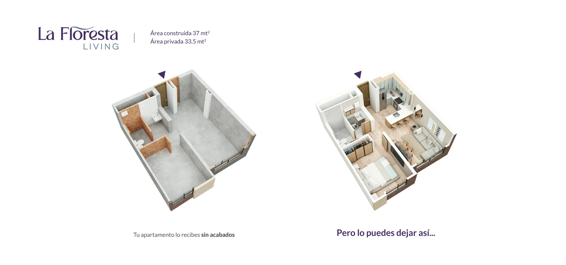 - Área Privada: 33.5m2
