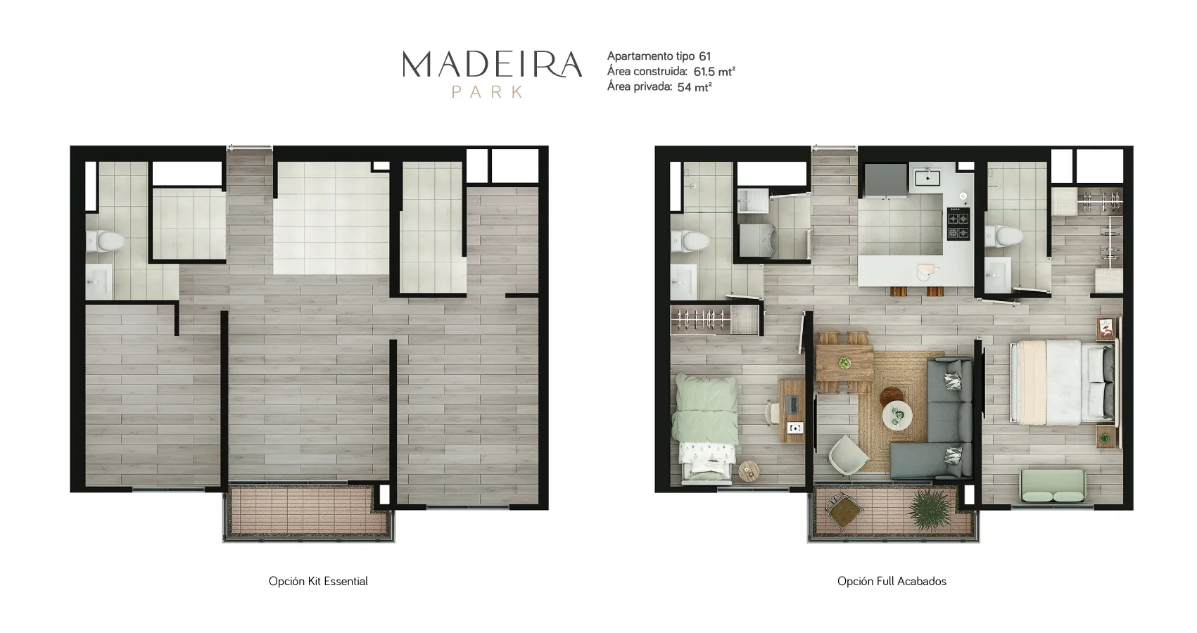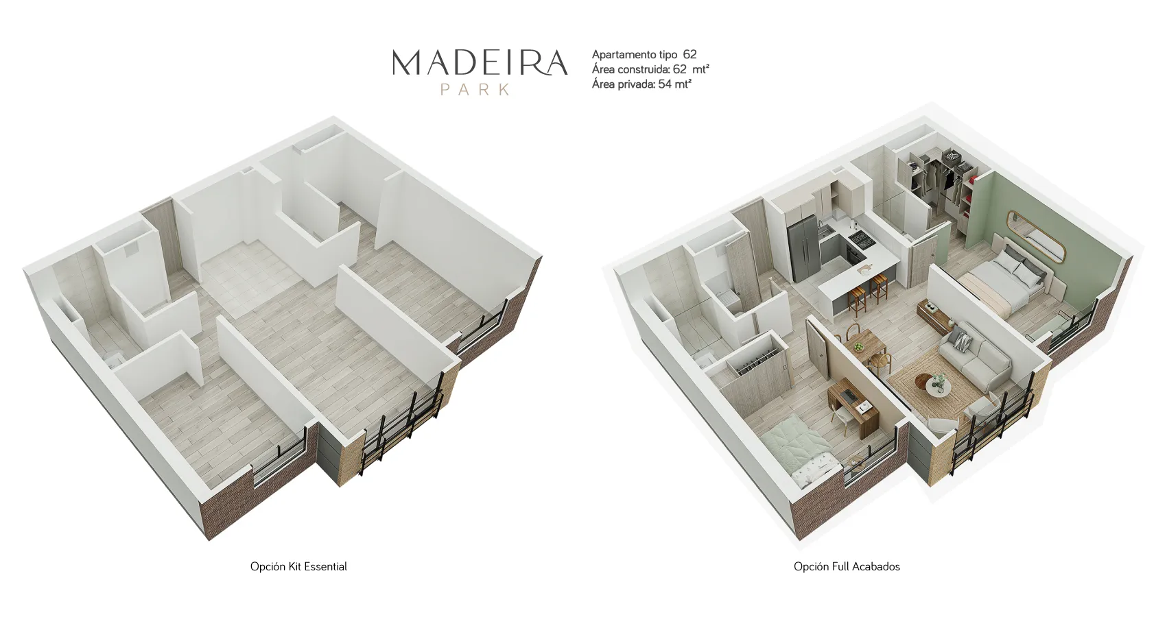 - Área privada: 54m2