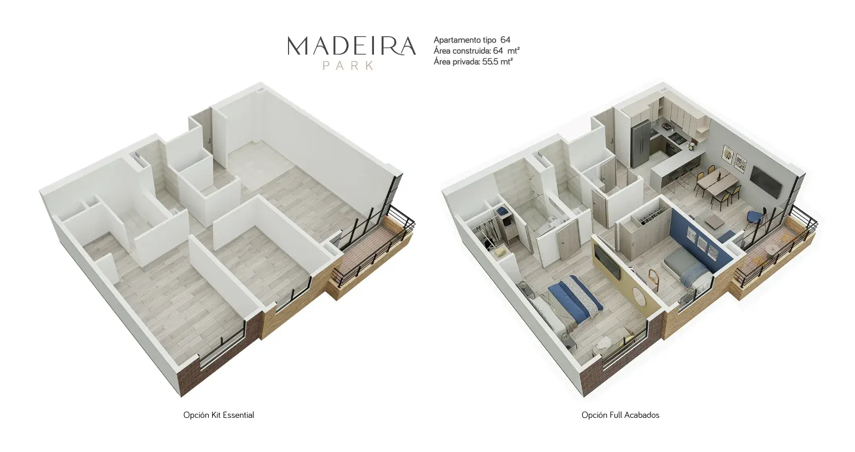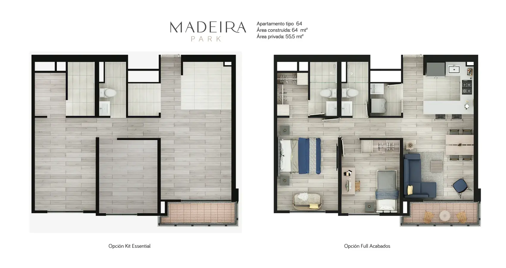 - Área privada: 55m2