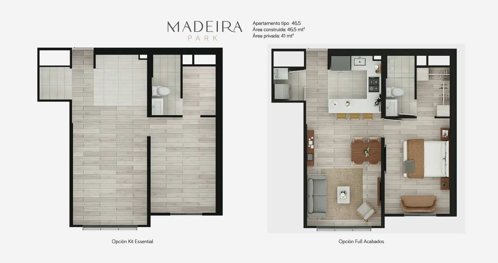 - Área privada: 46m2