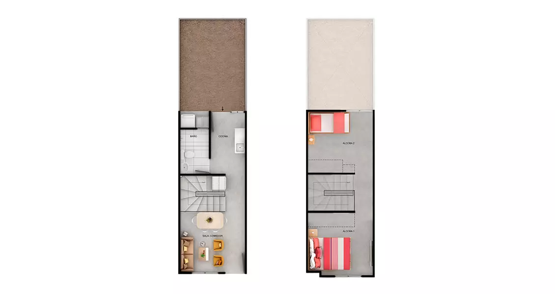 - Alcobas: 2 a 3