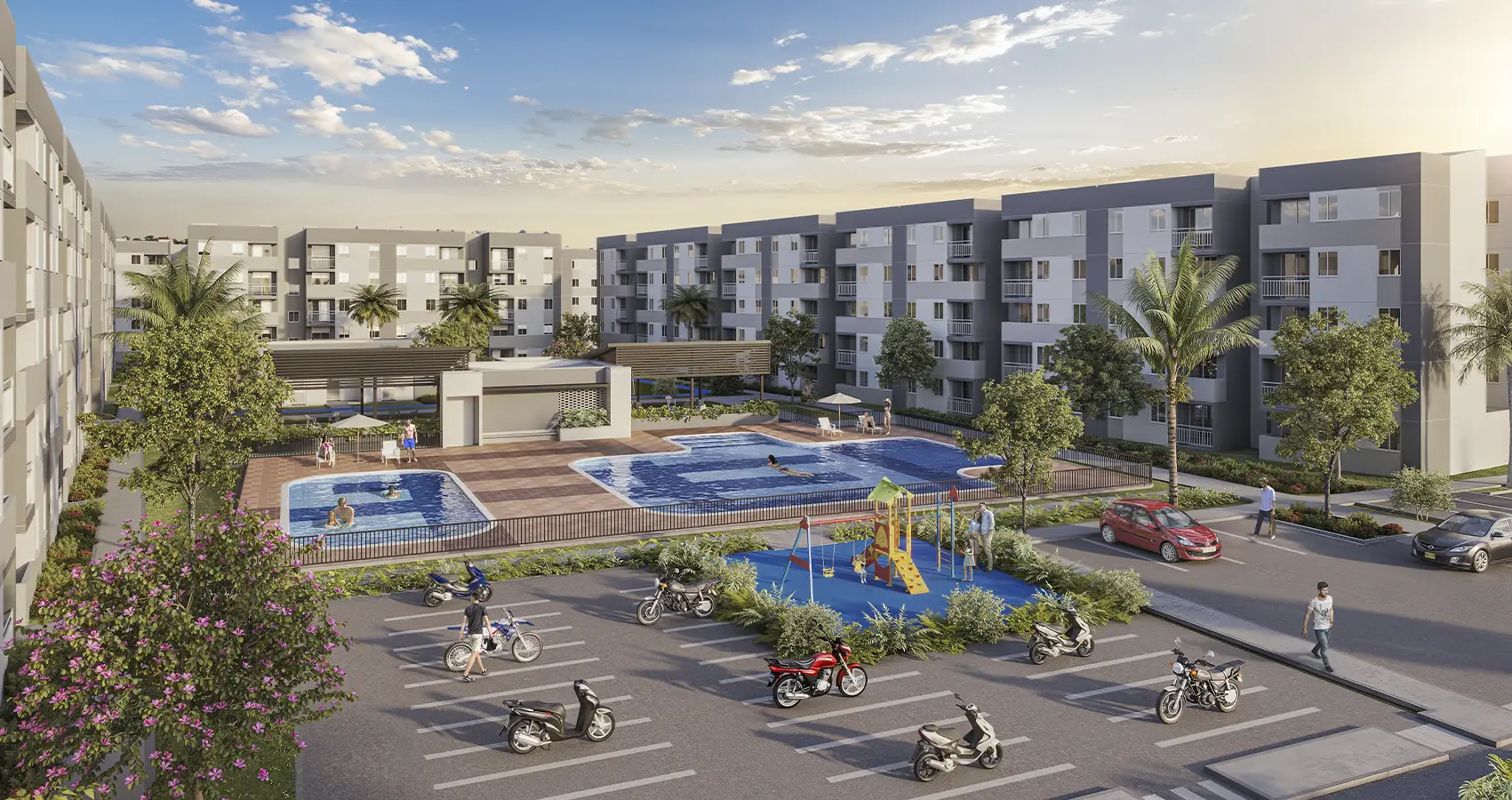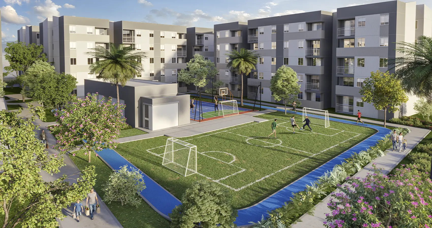 Este proyecto es una comunidad planeada para quienes valoran la tranquilidad, sin alejarse del desarrollo urbano. Conformado por 38 torres de 5 pisos, con piscina para adultos y niños, quiosco, cancha múltiple, cancha en césped, zonas de juegos infantiles y circuito de trote, ¡todo lo que necesitas para que tu vida sea más cómoda!