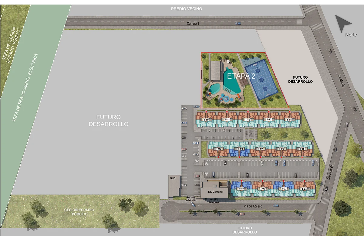 Nuestro proyecto de apartamentos en Soledad, Atlántico, ofrece una experiencia familiar incomparable. Disfruta de una variedad de zonas sociales, como un edificio comunal de tres pisos, terraza BBQ, zona de juegos infantiles, gimnasio biosaludable, salón social y cancha múltiple. Vivir aquí es una nota por su excelente ubicación, diseño innovador, precio accesible y mucho más.